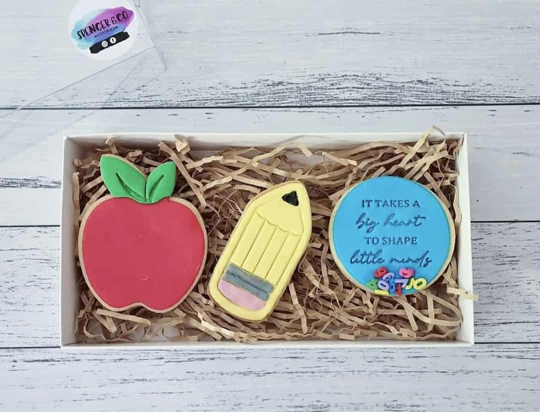 Show your appreciation with this sweet little thank you gift, a box of three decorated cookies, perfect for teachers, educators, or support staff.